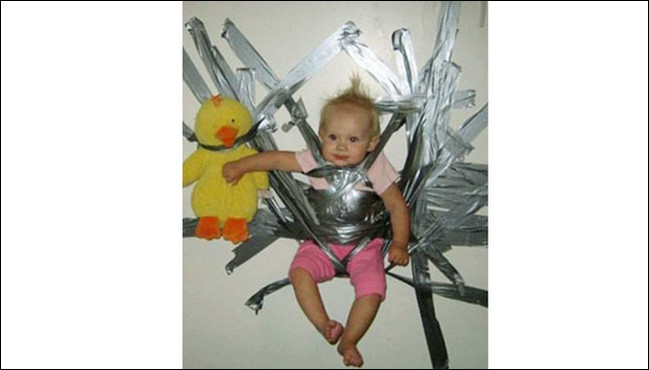 9. Bentuk TubuhMungkin sang orangtua hanya iseng agar membuat bayinya tidak menangis dengan menempelkannya di tembok menggunakan lakban. Namun si bayi pasti merasakan tidak nyaman dan bahaya jika plester terlepas juga menanti.